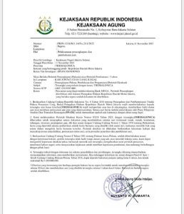 SAMARINDA-Telah beredar surat dari Kejaksaan Agung Nomor : PRINT-5218/M.1.14/Fu.2/11/2025 tanggal 11 November 2025 hal pelaksanaan penangkapan dan pembekuan aset yang ditandatangani oleh Jaksa Agung Muda Intelijen yang disebar secara random oleh orang yang tidak bertanggungjawab melalui pesan media sosial Whatsapp kepada masyarakat di Kaltim.